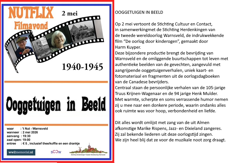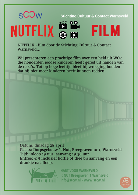 Nutflix Film Samen naar de film: ja, gezellig! Elke laatste dinsdag van de maand : de NUTFLIX FILM.I.s.m. andere organisaties vertoont de SCCW ook documentaires en films met een thema. Facebook DE STICHTING (SCCW) HEEFT SINDS NOVEMBER 2025 EEN ANBISTATUS